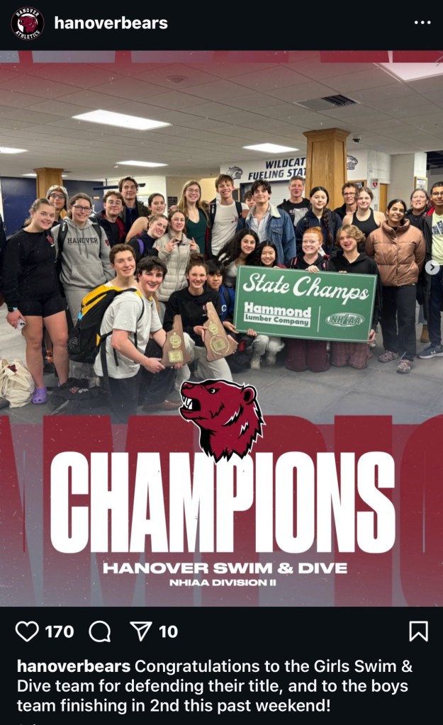 Coming out of 2023-24, where I attended a semester school in North Carolina in the Fall (The Outdoor Academy) and therefore only competed for my HS team that Winter, I wanted to maximize my opportunity for success in the 2024-25 season. I attended the Total Performance Swim Camp at Kenyon College early in the Summer & swam throughout the Summer and Fall with my club team – Upper Valley Aquatic Center. I dropped time in all of my events, qualified for regional championships in the Winter & Spring, and contributed to my HS team taking 2nd place in the State Championships.